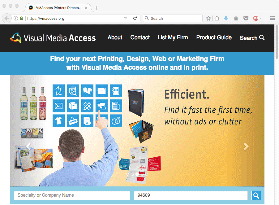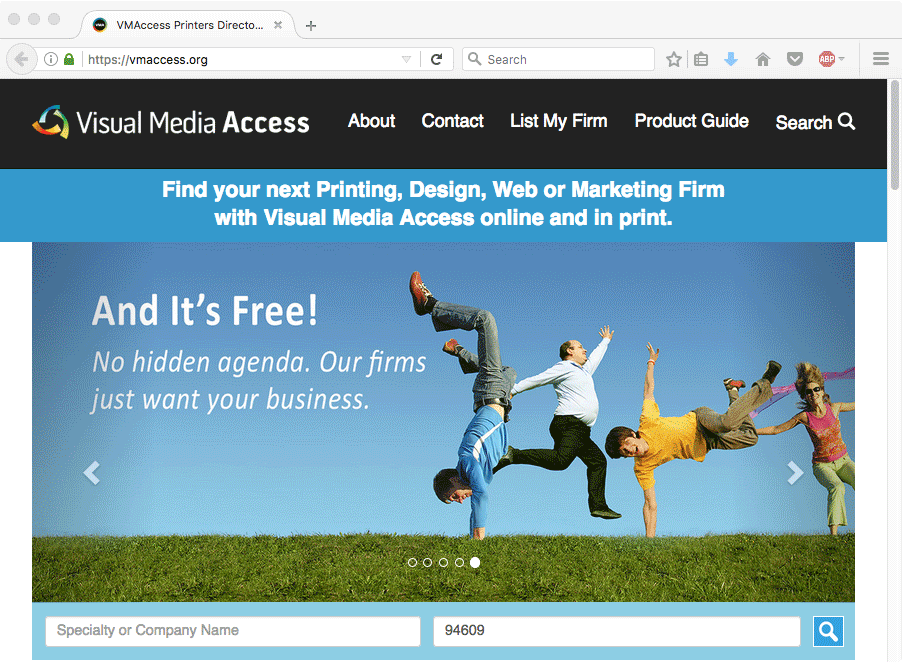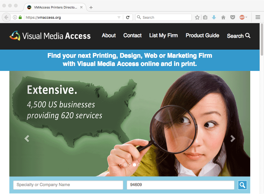 Visual Media Access website for Visual Media Alliance. My part in the project was designing/creating the five hero image layouts that populated the slider section at the top of the page.